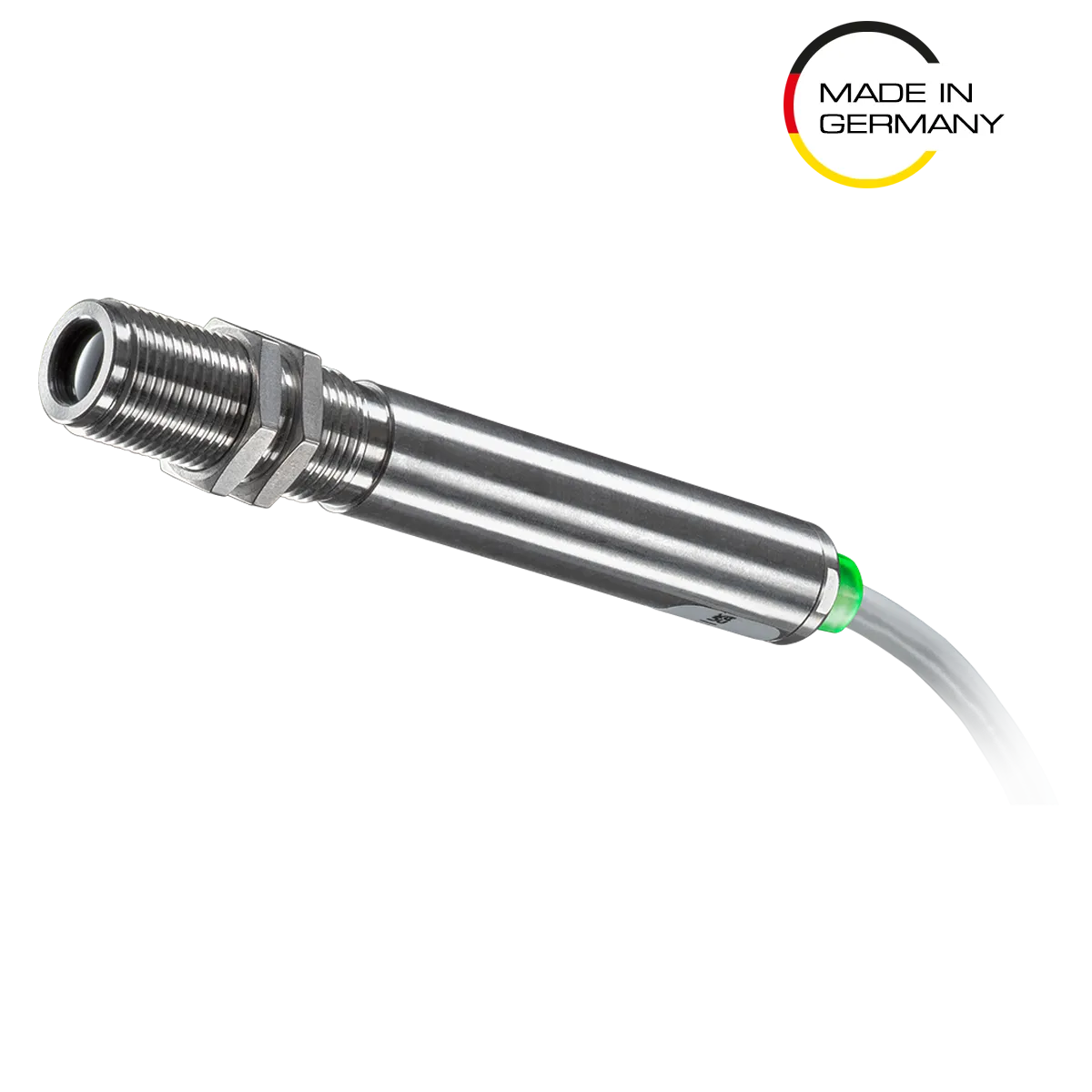 Der Sensor ist auf Wunsch auch mit abweichenden Kabellängen, alternativen Wellenlängenbereichen oder anderen Optikvarianten erhältlich.