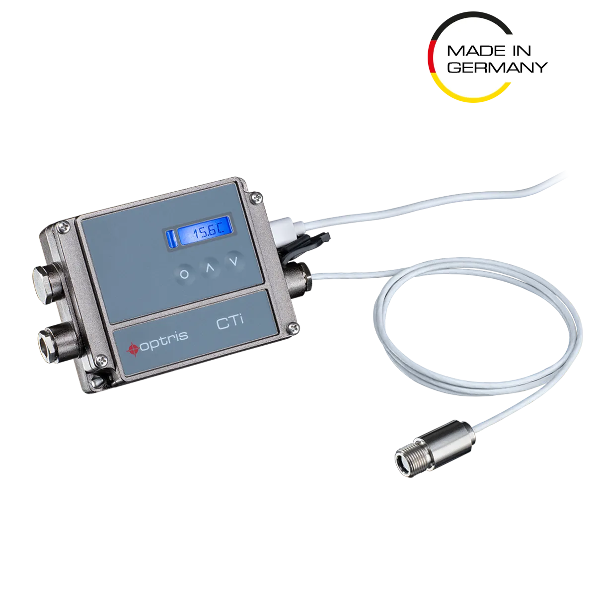 Bei dem hier beschriebenen Infrarotsensor handelt es sich um einen Pyrometer-Typ CTi mit einer Optik 22:1 und einer Anschlussleitung von 3000 mm.